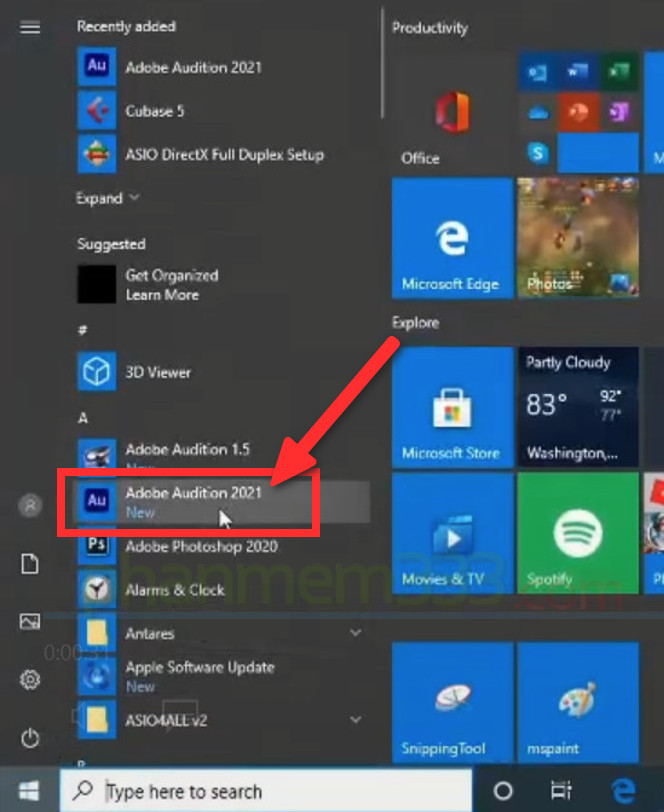 Giờ bạn có thể mở phần mềm Adobe Audition 2021 và sử dụng được rồi, bạn có thể tìm thấy icon phần mềm ở Menu Start hoặc trong ổ C nhé.