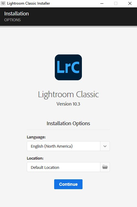 Bước 3: Bạn chọn Continue để tiếp tục tải xuống Adobe Photoshop Lightroom Classic 2021.