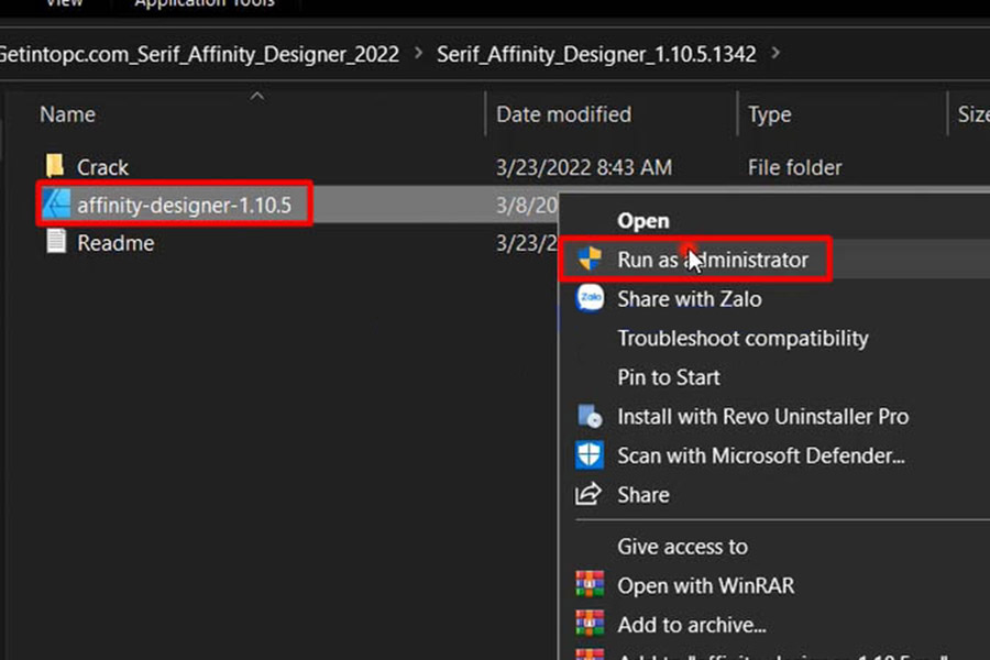 Bước 1: Giải nén phần mềm Affinity Designer 2022