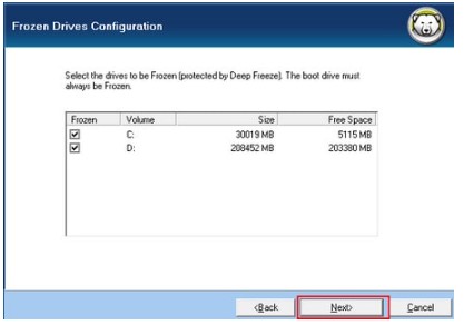Bước 6: Chọn ổ cứng mà bạn muốn thực hiện đóng băng, sau đó nhấp chọn ‘Next’ để tiếp tục