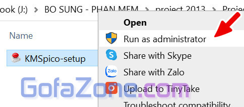 Chạy file KMSpic0 trong thư mục file kích hoạt.