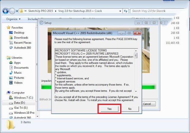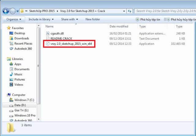 B1: Đầu tiên thì vào thư mục Vray 2.0 for Sketchup 2015 + Crack Chạy file vray 2.0_sketchup_2015_win_x64 xem hình bên dưới nhé
