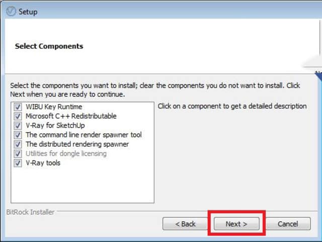 B4: Đến bước này thì hãy bỏ dấu tích ở ô đầu tiên (WIBU Key Runtime) => Next tiếp nhé